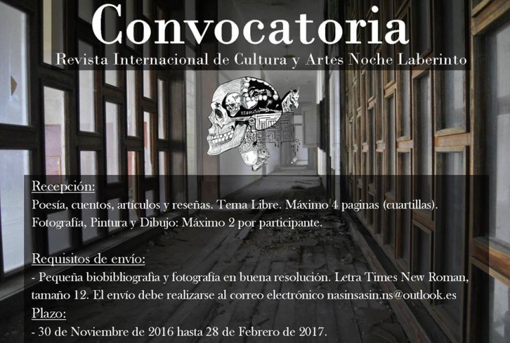 Leer más →Aquí les compartimos, no solo la nueva edición de la revista colombiana literaria "Noche Laberinto", sino también una nueva convocatoria para esta publicación. El plazo está abierto desde el 30 de noviembre de 2016 hasta el 28 de febrero próximo.