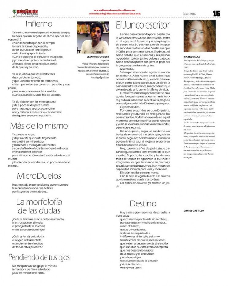 Leer más →La edición de Mayo de Culturizando, el suplemento literario de Dimensión Real de Colima publicó algunos de mis poemas y aquí los comparto con ustedes.